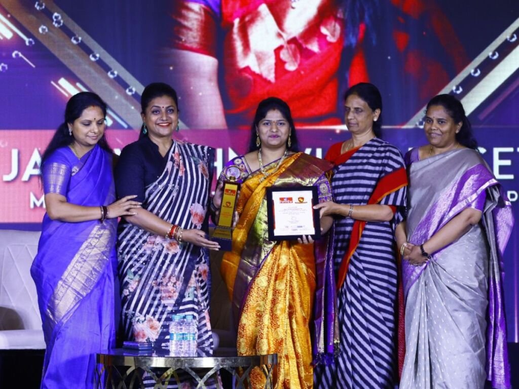 Telangana Education Minister Smt. Sabitha Indra Reddy, BRS MLC Smt. Kavitha, Smt. Roja Selvamani (Minister for Tourism, Culture and Youth Advancement of Andhra Pradesh), and Smt. Laxmi Rao (CEO, HMTV) all attended an extravagant ceremony to felicitate Mrs. Koppisetty Jaya Vyshnavi and recognize her hard work throughout her career.