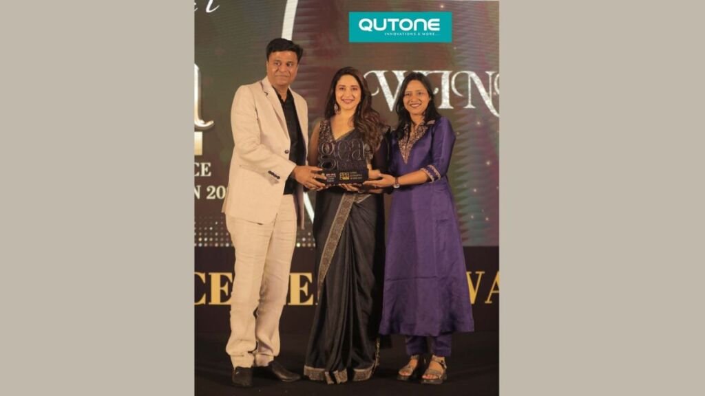 Qutone Tiles is presented by “Most Trusted Tile Brand” by Actor Madhuri Dixit at GEA 2023
