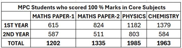 Students who score 100% Marks in Core Subjects.